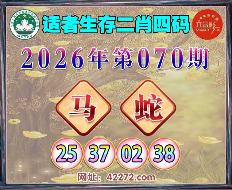 070期:『适者生存』 二肖四码【马蛇】【25.37.02.38】开:马25准见证上榜